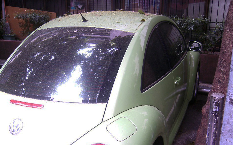 說停車位旁邊的樹掉了一堆葉子跟花粉
